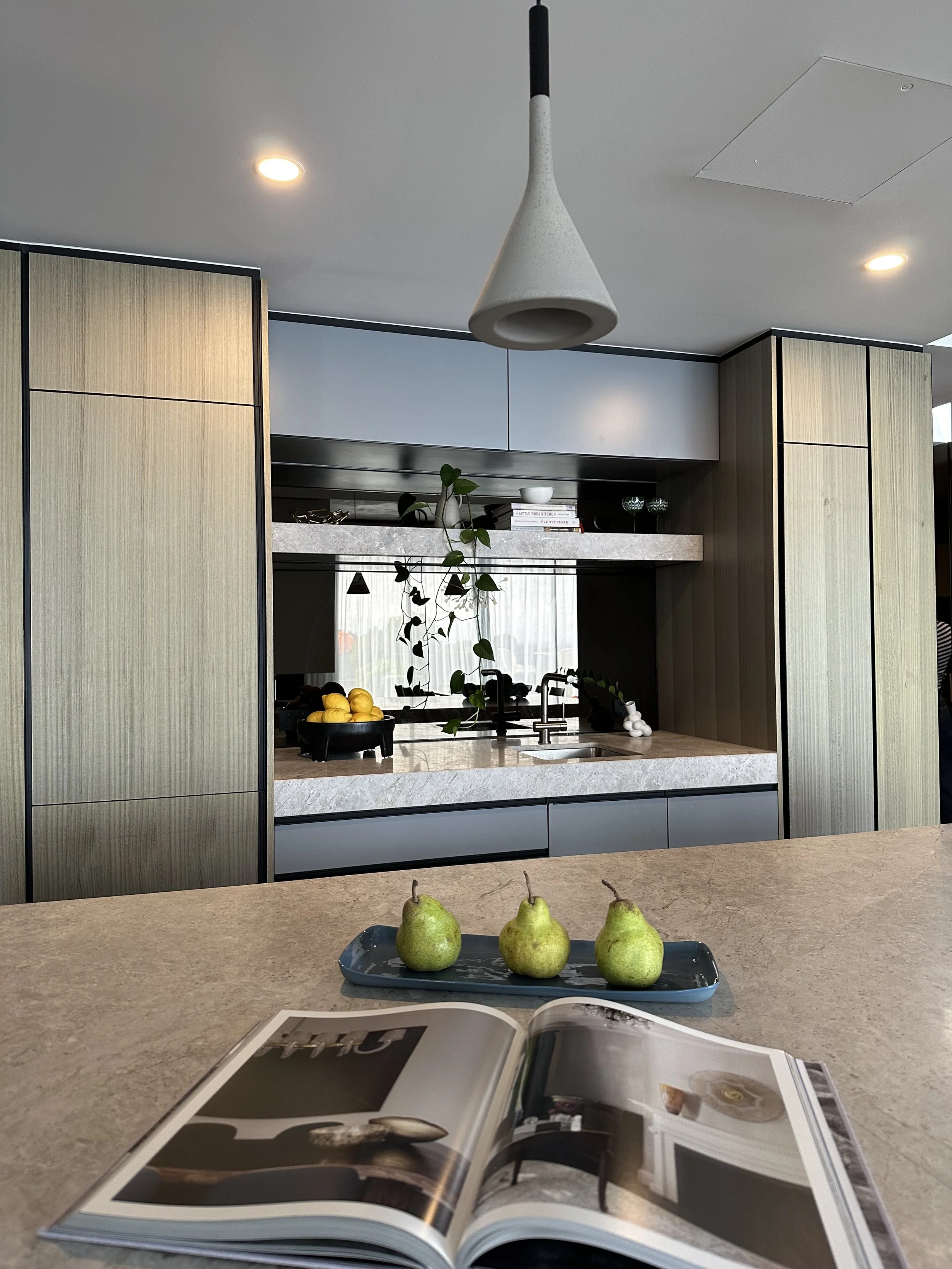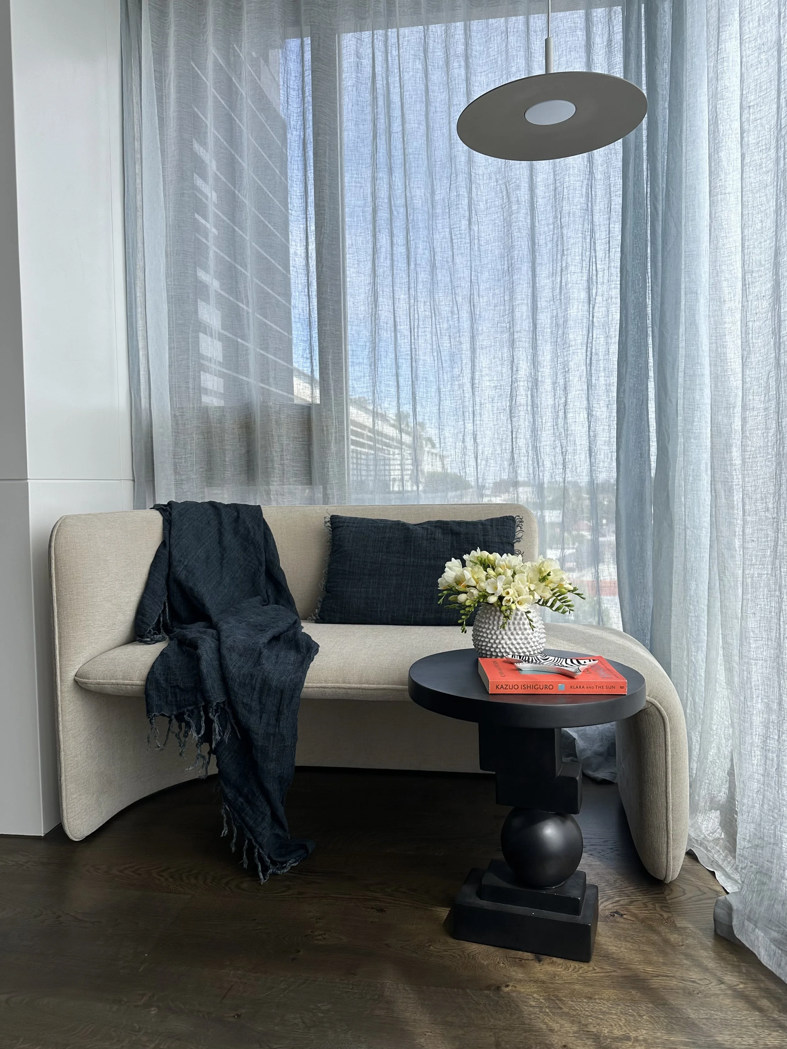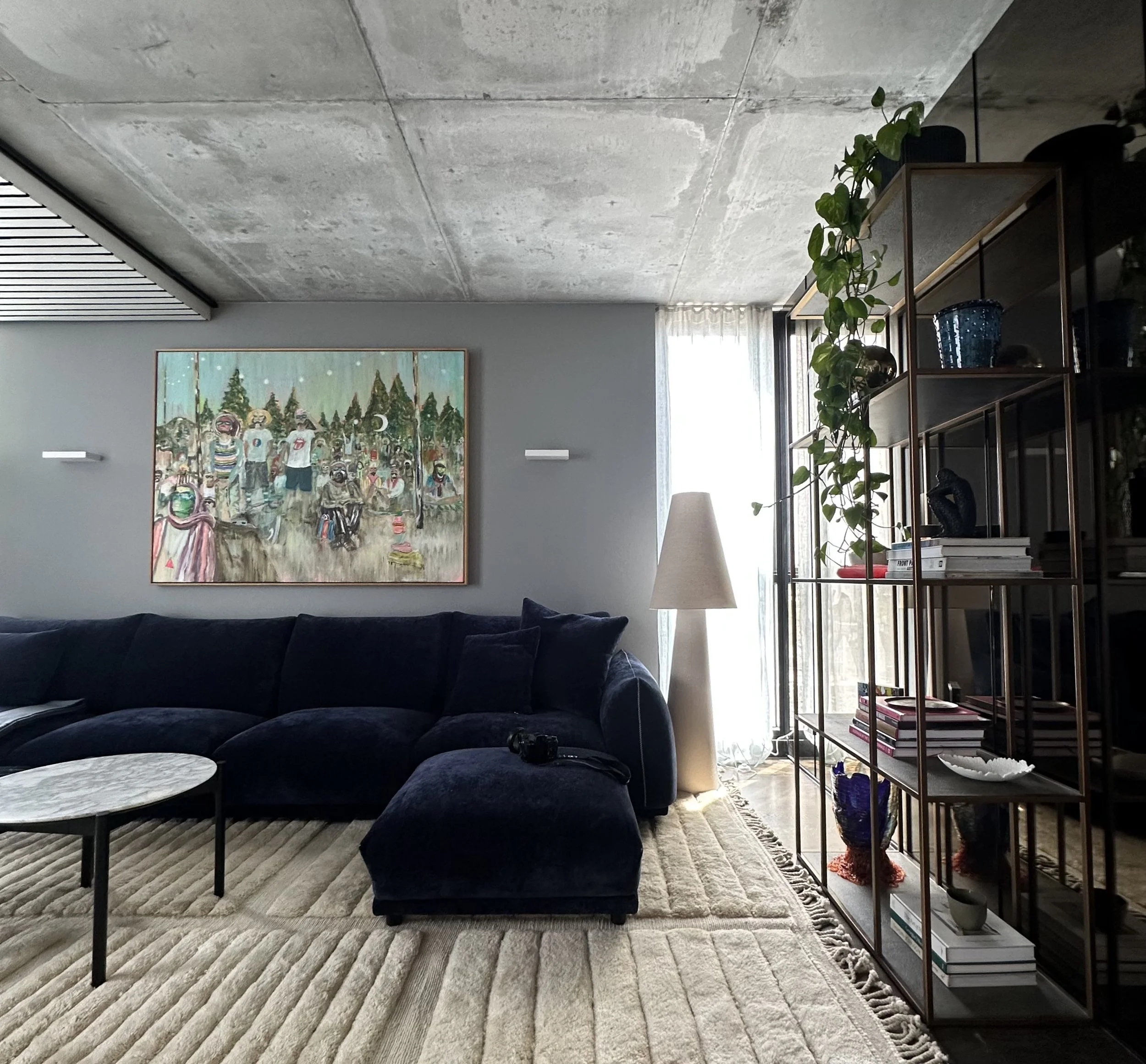 A stunning, contemporary, brutalist penthouse with a curated living environment that is comfortable and stylish but with an edge. It incorporates luxurious finishes, contemporary furniture and exceptional artworks which are punctuated with injections of colour. The plan maximizes the available space and provides a warm and inviting ambiance to relax and entertain whilst still being mindful of cost.
